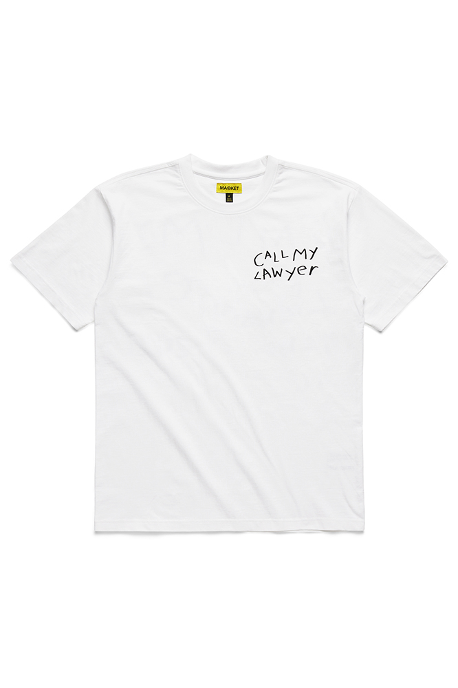 Market Call My Lawyer Hand Drawn Tee White